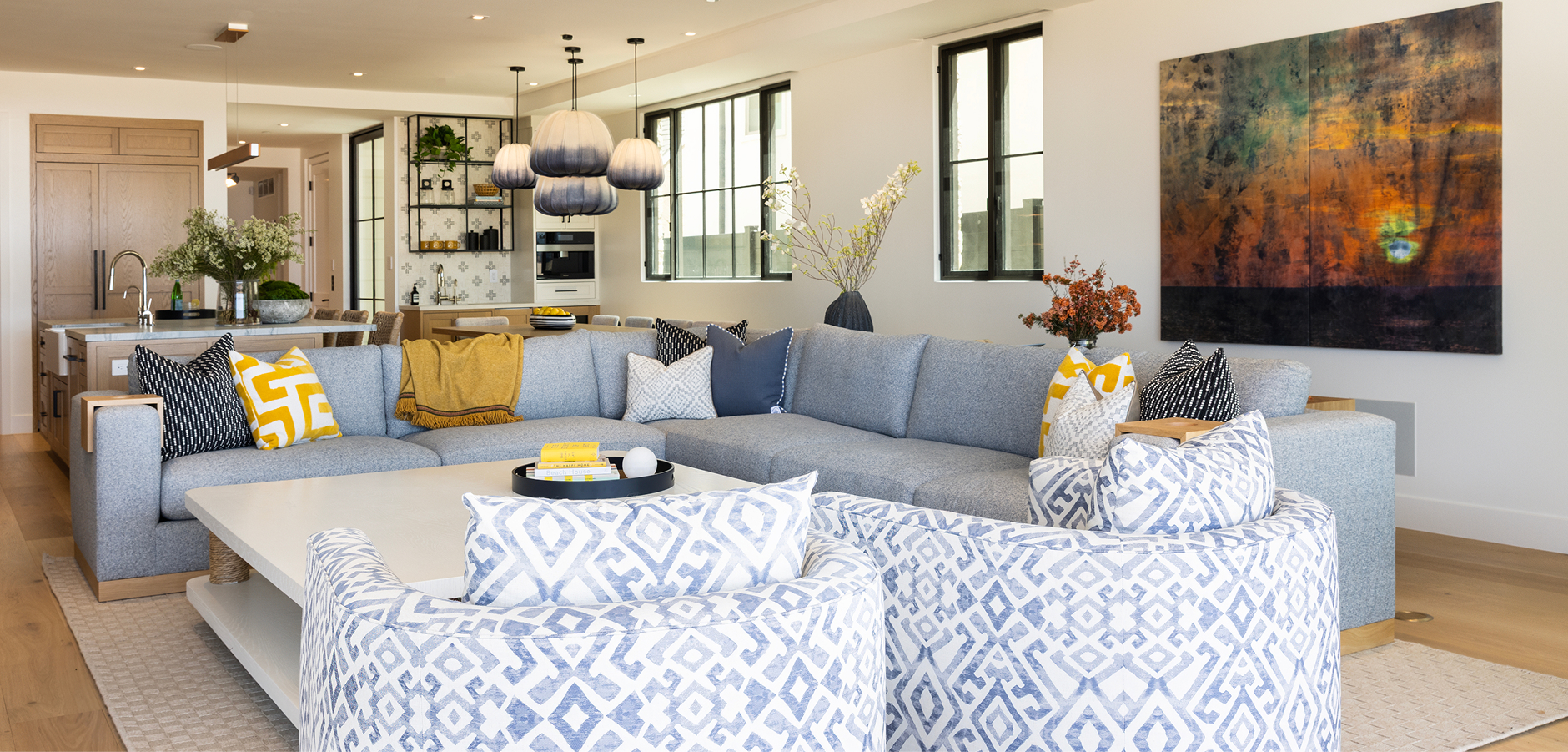A: Huntington Beach’s diverse neighborhoods support a wide range of design vocabularies. Waterfront homes in Huntington Harbour often suit refined California Coastal, Sophisticated Nautical, or Warm Contemporary approaches. Edwards Hill’s equestrian estate character works well with Organic Modern or Warm Traditional aesthetics. Brightwater and Seacliff homes frequently respond to Clean Transitional or elevated California Casual. Grace Blu develops a design vision specific to your home and lifestyle — not a formula.